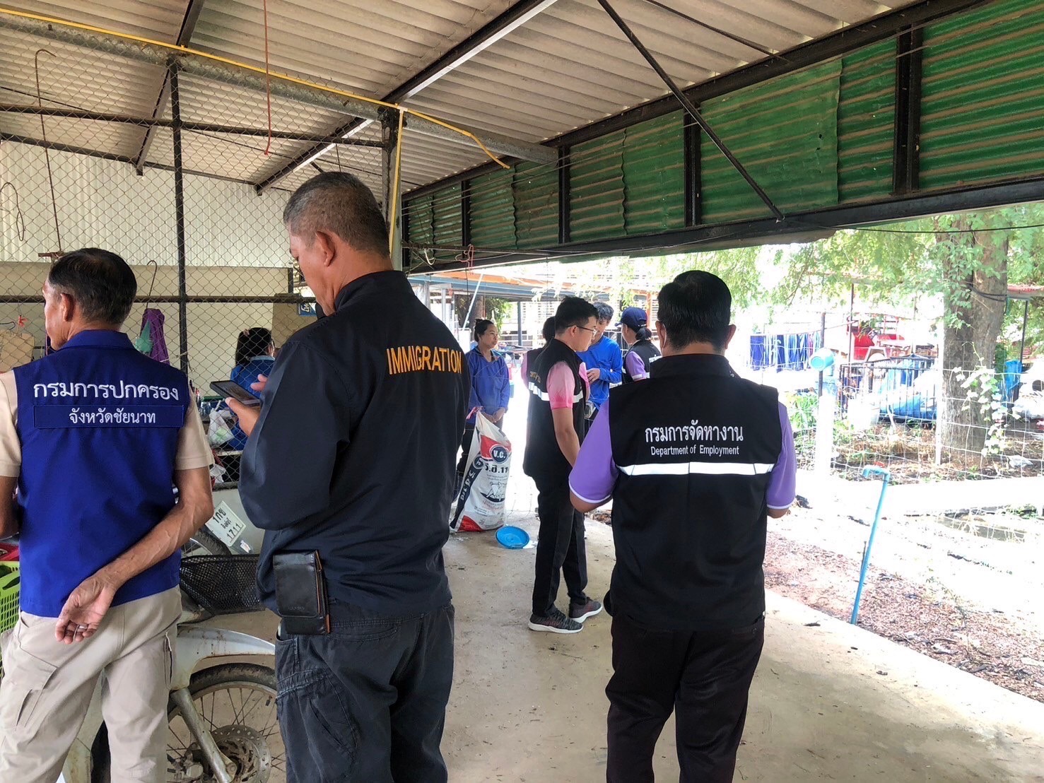 เจ้าหน้าที่สืบสวนปราบปราม ตม.จว.ชัยนาท ออกบูรณาการร่วมกับเจ้าหน้าที่ฝ่ายปกครองจังหวัดชัยนาท, แรงงานจังหวัดชัยนาท, จัดหางานจังหวัดชัยนาท, กก.สส.ภ.จว.ชัยนาท และเจ้าหน้าที่อื่นๆ ที่เกี่ยวข้อง ออกตรวจสถานประกอบการในพื้นที่ เพื่อป้องกันการค้ามนุษย์ด้านแรงงาน ต.ไพรนกยูง อ.หันคา จ.ชัยนาท จากการตรวจสอบไม่พบการกระทำความผิดแต่อย่างใด