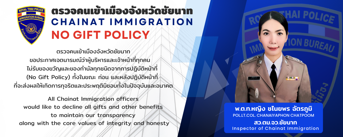 O17 ประกาศนโยบายต่อต้านการรับสินบน (Anti-Bribery Policy) ประกาศ ตรวจคนเข้าเมืองจังหวัดชัยนาท เรื่องนโยบายต่อต้านการรับสินบน View Fullscreen Announcement of Chainat Immigration Subject Anti-Bribery Policy View Fullscreen